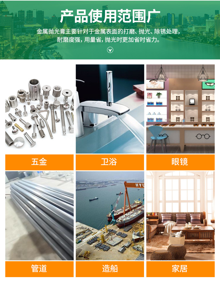 適于要求精密且細致的工作,研磨滑順不產生高壓而留下黑斑,減少瑕疵,不改變工件原重量,對于不銹鋼、鈦合金等材料都能發揮好的效果。拋磨后的光亮度,很迎合外商對于產品亮度的要求。 *產品優點: 1、A級輪采用新配方具有研磨力更強,拉絲更干凈、更快速,絲路更清晰,對鋅合金、鍍鉻等質地較硬的工件的表現。 2、一次完成清潔、毛刺、拋光和裝飾紋處理的工作,可研磨出細致的砂紋,而且使金屬表面更細,更亮. 3、耐磨性高:砂與絲脫落性一致,無堵塞現象,與同類產品相比耐磨性增加20%左右。 4、由于纖維上的礦砂分布均勻,效果均衡、光滑、美觀,且研磨后光潔度佳。 *主要應用市場: 1、不銹鋼產品的表面處理拋光(如保溫杯、餐具、刀具、高爾夫球球頭等) 2、建筑小五金拋光(鎖具、門把手等) 3、工具類、機器零部件(不銹鋼鋼管、傳動軸、各種機械零件、零件槽體等) 注:圖片僅供參考,產品以實物為準。 規格:200mm*50mm*9PA 粒度:80#-320#(400#—1200#價格另報)