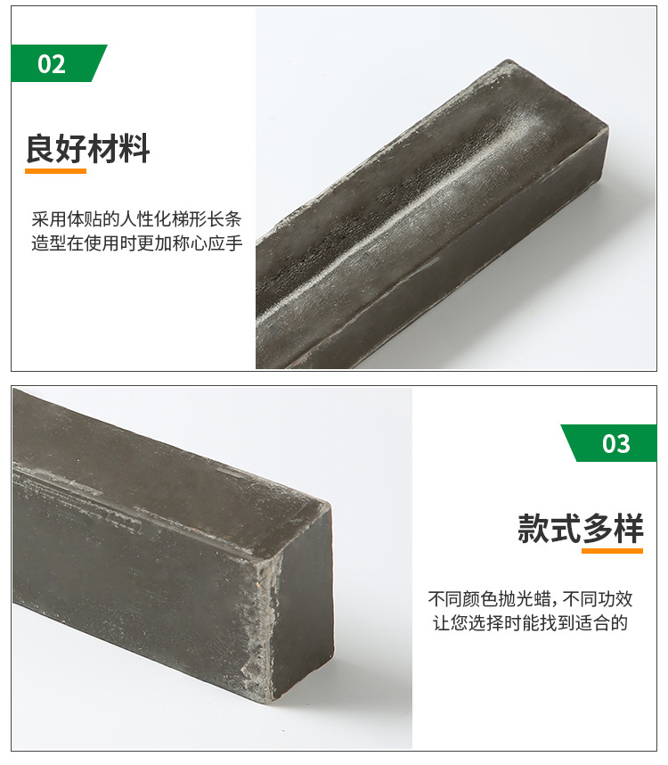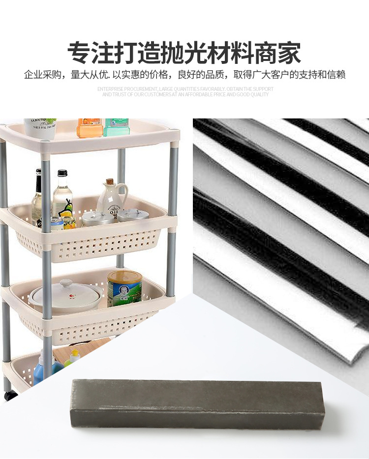 溫州華銘拋光研磨材料廠家直供拋光蠟,五金拋光打磨磨砂磨料拋光蠟,不銹鋼拋光膏鏡面,本產品配合麻輪、布輪、針對適用于銅,塑膠,亞克力,樹脂材料、硬質材質等有著較高的黑光。