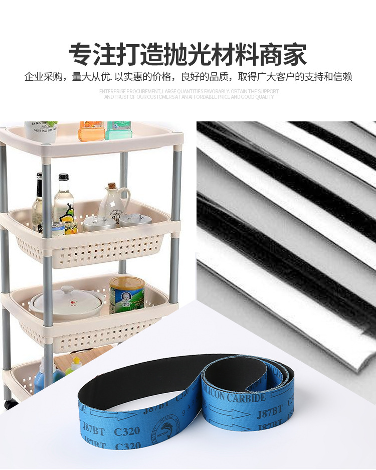 拋光砂帶 各種規格砂帶 精密砂帶磨削是一種彈性磨削,因而砂帶磨削是一種具有磨削、研磨、拋光多種作用的復合加工工藝,砂帶上的磨粒比砂輪磨粒具有更強的切削能力,所以砂帶磨削的效率非常高,磨削速度穩定.